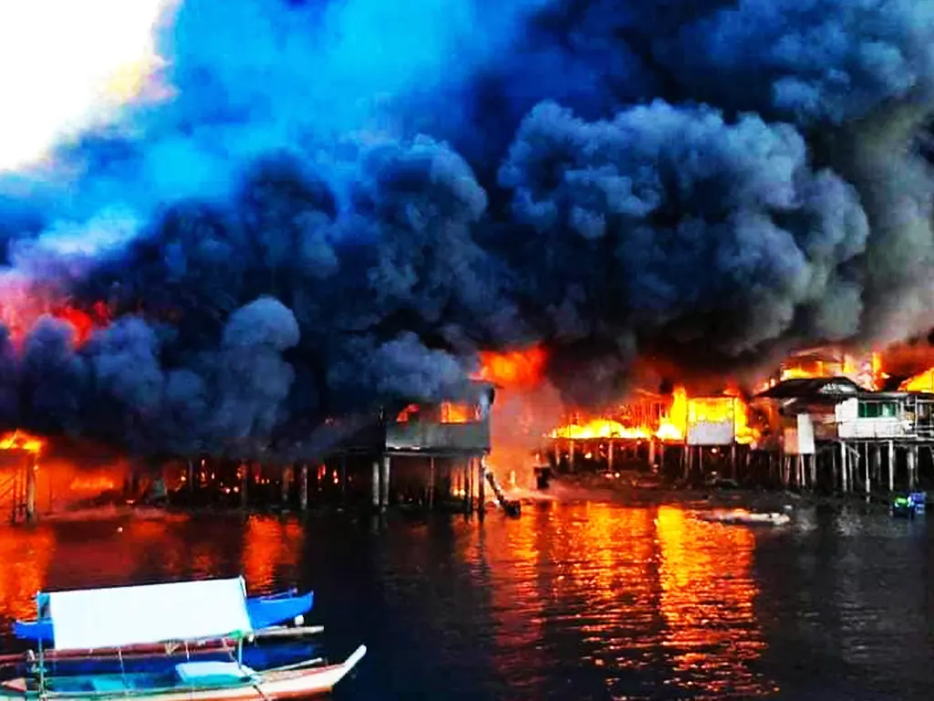 Firefighters said that an estimated 20,000 individuals were affected by the fire that gutted around 600 houses of light materials in Sitio Sta. Maria, Barangay Pusok on Tuesday afternoon (December 12, 2023), right behind the Island Central Mall.