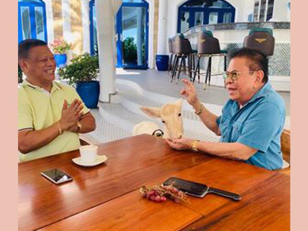 Metro Sun exclusive interview with Chavit: Mayor Luis ‘Chavit’ Singson, right, in an exclusive interview with Metro Sun’s Mar T. Supnad as the former feeds his wild deer with grapes inside his mansion in Narvacan, Ilocos Sur.