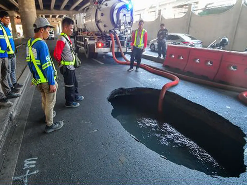 According to the report of the Department of Public Works and Highways (DPWH), the “sinkhole” was caused by a leak from the water pipeline of Maynilad Water Services, Inc. The opening of the hole measures 2 meters by 3 meters but the hollow space inside is much wider. It also goes down as deep as 8-10 feet.