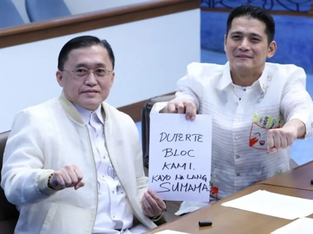 Before the Senate session adjourned, the two senators displayed the signature fist bump associated with former President Duterte, holding up papers that read: “We are the Duterte bloc. You guys come join us!”