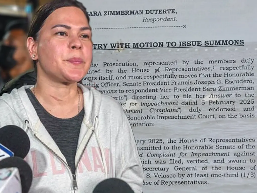 The House is asking Senate President and Impeachment Court Presiding Officer Francis “Chiz” Escudero to issue a writ of summons to Vice President Duterte, directing her to respond to the Verified Complaint for Impeachment within ten (10) days from receipt.