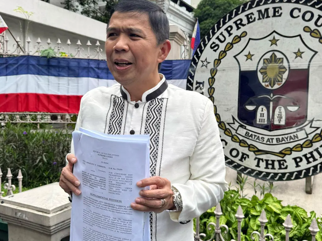 MINDANAO-BASED lawyer Israelito Torreon has filed a supplemental petition with the Supreme Court, seeking to restrain the Senate from proceeding with the impeachment trial of Vice President Sara Duterte.
