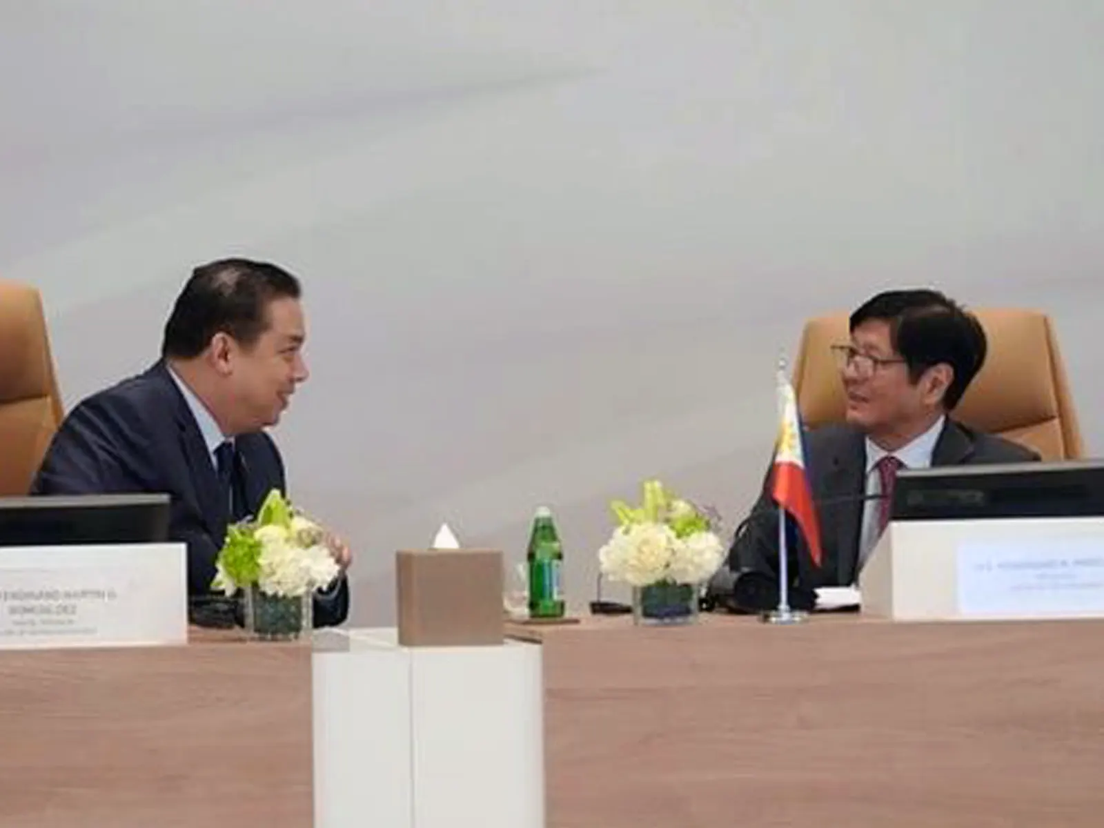 President Ferdinand "Bongbong" R. Marcos Jr. chats with Speaker Ferdinand Martin G. Romualdez during their roundtable meeting with Saudi business leaders held on the sidelines of the 2023 Association of Southeast Asian Nations-Gulf Cooperation Council Summit (Asean-GCC) Thursday afternoon (Saudi time) at St. Regis Hotel Riyadh, Saudi Arabia. Courtesy: Office of House Speaker Martin Romualdez