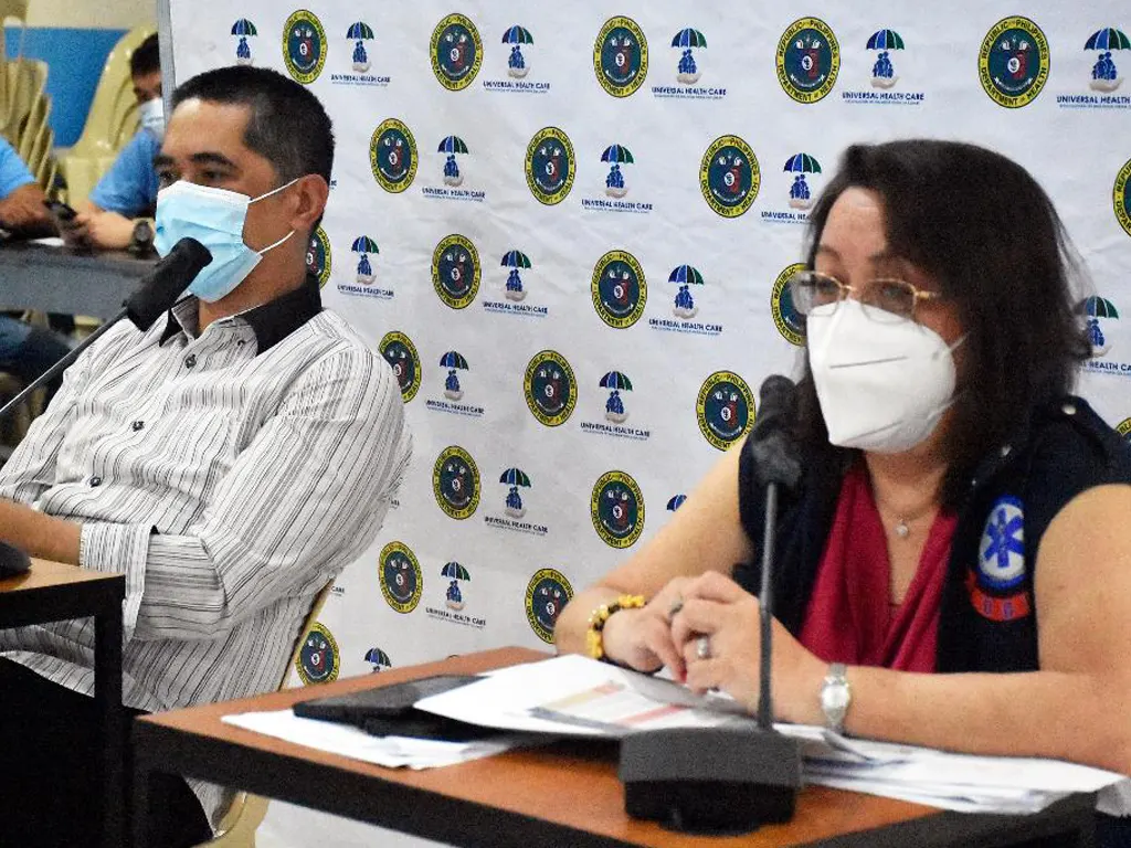 DOH Ilocos Region Regional Director Paula Paz M. Sydiongco (R) with Assistant Regional Directo Marwynn D. Bello emphasizes the continues observance of safety protocols amidst the drop of Covid cases in the region during the weekly regional health cluster meeting held on February 22, 2022 at DOH1 Conference Room.