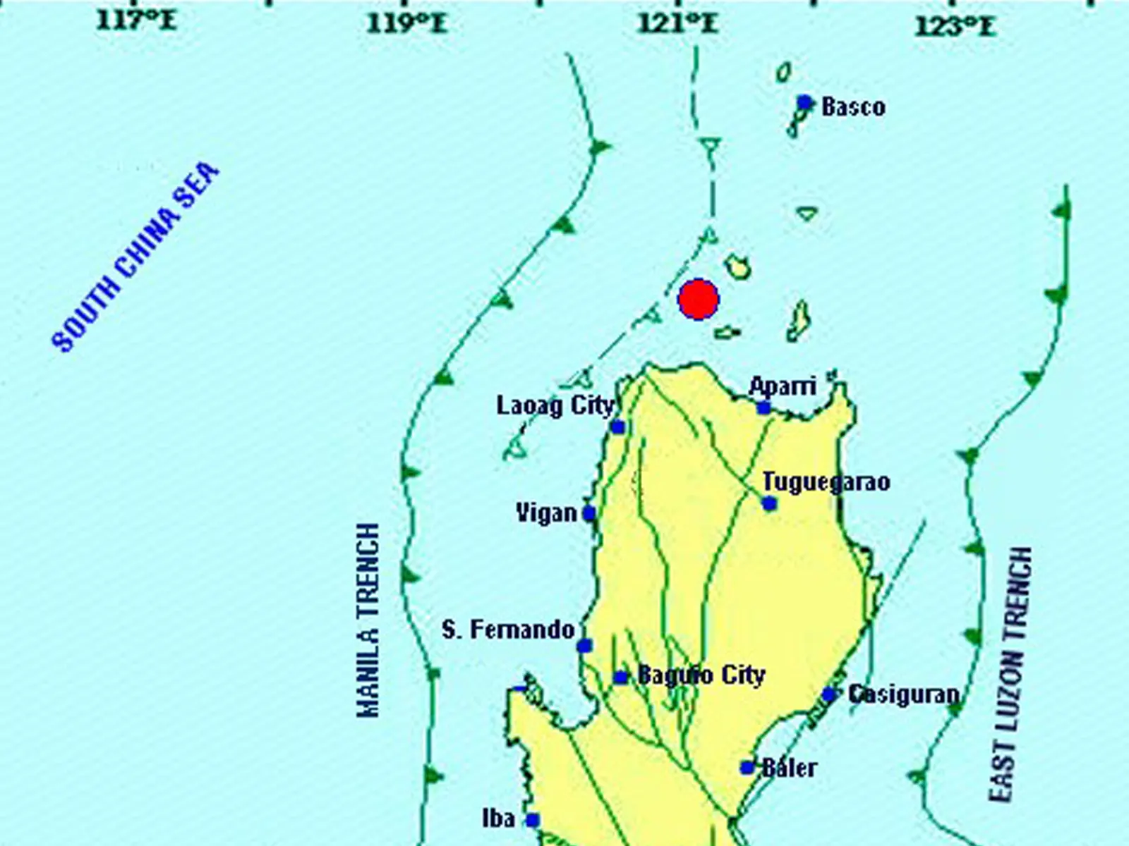The epicenter was located 26 kilometers northwest of Dalupiri.