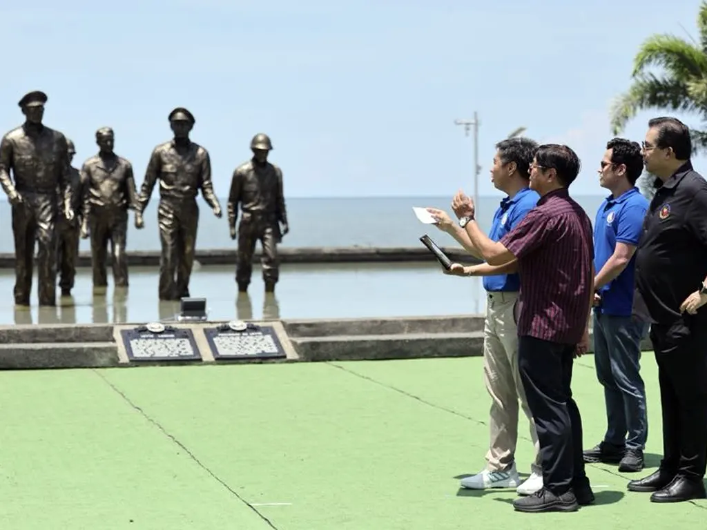 President Ferdinand R. Marcos Jr., accompanied by Leyte 1st District Rep. Ferdinand Martin G. Romualdez, DICT Secretary Henry Aguda, and DICT Undersecretary Paul Joseph Mercado, tests the Free Public WiFi he launched at the MacArthur Landing Memorial National Park in Palo, Leyte, on Monday morning.